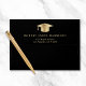 Elegant black graduation return address envelope. The back flap features a gold grad cap and the graduate's name and address in gold serif typography.