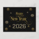 Elegant Black Gold Happy New Year 2026 snowflakes Postcard