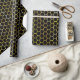 Elegant wrapping paper in popular featuring a hand drawn gold hexagon reminiscing of a beehive. This iteration has customizable black background.