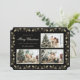 Elegant black and gold photo Christmas card featuring a photo collage and gold holly on a black background. Easily personalise this photo collage holiday card with your favourite photos and the family name.