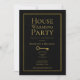 An elegant gold frame black housewarming party invitation.