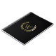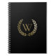 Elegant Black Gold Laurel Wreath Monogram Notebook