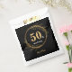 Elegant black and gold 50th wedding anniversary favour bag. Design features gold leaves, number 50 and script calligraphy names. Click personalise to add your details or edit using design tool for further editing.