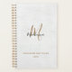 Elegant Black Gold Linen Modern Monogram Name Planner