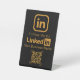 Elevate your professional presence with this elegant gold and black LinkedIn pedestal sign. Featuring a prominent "Follow Us On LinkedIn" message alongside your business name and a scannable QR code, this sign makes it effortless for clients and colleagues to connect with you online. The sophisticated gold foil effect on a deep black background adds a touch of class to any office or event space, encouraging engagement and expanding your professional network. This sign is a must-have for any business aiming to boost its LinkedIn visibility and professional connections.