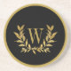Beautiful stately black with gold glitter accents monogram home coasters. Gorgeous for a wedding or shower gift. Stately and chic.