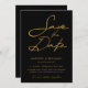 Looking for modern typography wedding invitations? Introducing our stunning Elegant Black Gold Modern Typography Wedding Save the Date! This black and white save the date exudes timeless sophistication with its elegant modern typography and sleek, minimalist design. It's the perfect choice for couples seeking understated yet stylish wedding invitations that capture the essence of an elegant modern wedding theme. Beautiful digital gold effect on the "Save the Date" text.