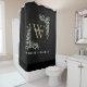Elegant Black Gold Monogram Eucalyptus Greenery Shower Curtain