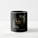 Elegant Black Gold Monogram Eucalyptus Greenery Two-Tone Coffee Mug