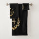 Elegant Black Gold Monogram Eucalyptus Wreath Bath Towel Set