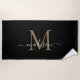 Elegant Black Gold Monogram Feminine Girly Script Beach Towel