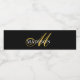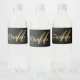 Elegant monogrammed water bottle labels with gold script with flourish, and white serif name on a rich black background. Keep your own water bottles labelled for yourself or to give to others for business purposes.