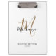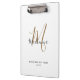 Modern Elegant Black Gold Monogram Girly Script Name Clipboard . Personalise this chic monogrammed white clipboard design with your name and monogram initial in a trendy and girly script typography. Perfect gift for her.