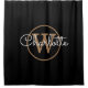 Elegant Black Gold Monogram Girly Script Shower Curtain