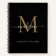 Elegant Black Gold Monogram Initial Script Name Custom Back Logo Notebook