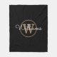 Elegant Black Gold Monogram Script Name Fleece Blanket