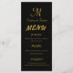 Elegant Black and Gold Monogram Script Wedding Menu Card