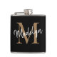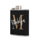 Elegant Black Gold Monogram Stylish Script Name Flask.Easily personalise this modern elegant flask with your custom monogram and name.