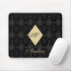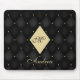 An elegant and chic design featuring a luxurious black tufted background with gold divets and a gold diamond featuring your monogram and name in elegant script typography. Make a statement with this minimalist black and gold mousepad.