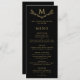 Elegant Black & Gold Monogram Wreath Wedding Menu