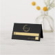 Elegant Black & Gold Monogram Wreath Wedding Place Card
