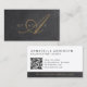 Elegant Black Gold Monogrammed Luxe Leather Business Card