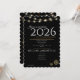 A sophisticated and festive digital background perfect for a New Year's Eve party invitation, greeting card, or social media graphic. The design features a deep black backdrop contrasted by sparkling gold and white string lights hung across the top.