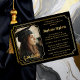 Elegant black graduation party invitation featuring a refined scalloped photo panel on the left and personalized event details on the right, all framed by a genuine gold foil double scalloped-edge border. This landscape-oriented foil invitation offers a timeless, sophisticated look ideal for celebrating high school, college, or university graduates. Fully customizable with the graduate’s photo, name, degree, date, and event details, this polished design creates a memorable keepsake for honoring an important milestone. Composite design by Holiday Hearts Designs (rights reserved).