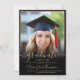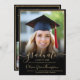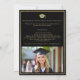Celebrate your milestone with this stylish black and gold graduation invitation featuring your photo on the front with elegant calligraphy. The back includes a personal message, event details, and an additional photo framed with gold accents. Perfect for high school or college graduates looking for a sophisticated announcement.