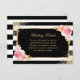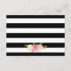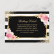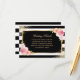 Elegant black and white striped floral wedding insert card featuring watercolor blush pink, ivory and peach flowers and gilded greenery. Matching items available.