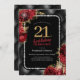 Elegant Black Gold Red Floral 21st Birthday Party Invitation