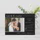 This modern save the date invitation features elegant calligraphy and simple sans serif typography font with a photo and QR code on a black background with faux gold lines, gold heart ring, and white/gold text for a clean minimalist and modern look, which is a beautiful way to tell your guests to inform about your upcoming wedding. Announce to your family and friends you are getting married with this invitation and add a personal touch with beautiful pictures of you and your soon-to-be better half. The simplicity of this design adds a touch of elegance to your wedding. It works well with many wedding themes and definitely a great addition to your wedding. Just customise the names and wording in a few easy steps and personalise the invitation card with your photo of the happy couple and replace the QR Code with yours.