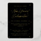 An elegant, modern New Year's Party Invitation featuring foil pressed handwritten script and scattered stars on black background. All text - apart from the 'New Year's Celebration' script - is fully editable, so you can easily add or delete text and change the font style/size/layout to suit your needs. This design is available in other colours and in a non-foil version.