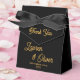 Treasure your big day in style with these Elegant Black Gold Script Minimalist Wedding Favour Boxes! The chic gold script adds a touch of sophistication, perfect for a romantic black tie affair. Customised with your names and wedding date, these keepsakes will be cherished by guests for years to come.