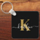 This simple, elegant black keychain with your first name in a trendy script font in white and your first initial in a modern cap font in gold is perfect for your keys. It's stylish and modern and yet very classic.