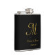 Elegant Black & Gold Script Monogram Name Wedding Hip Flask