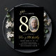 Make your celebration unforgettable with this elegant 80th Birthday Invitation, featuring a bold gold-foil-style “80” on a sleek black background. There is an oval photo frame perfect for showcasing a favorite photo. Modern typography and refined script accents create a classy, timeless look. All text is fully customizable, making it perfect for a 80th birthday party or 80th surprise celebration.