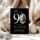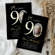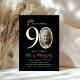 Make your celebration unforgettable with this elegant 90th Birthday Invitation, featuring a bold gold-foil-style “90” on a sleek black background. There is an oval photo frame perfect for showcasing a favorite photo. Modern typography and refined script accents create a classy, timeless look. All text is fully customizable, making it perfect for a 90th birthday party or 90th surprise celebration.