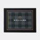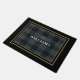 Welcome guests to your home with this customisable doormat that features a classic black and grey tartan plaid pattern with an elegant gold emblem. Personalise it with your family name and crest to add a touch of sophistication and masculinity to your doorstep. This timeless design will make a great gift for yourself, family, friends, or new homeowners. Modify the name and initial to meet your needs and create a warm, inviting entrance.