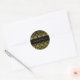Lovely round wedding stickers done in a black and gold tone damask pattern. A black stripe, across the middle, has golden brown script text. Personalise the text to read what you want. Great as seals to your wedding invitation envelopes or as gift tags for favours.