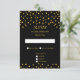 Elegant gold metallic look confetti on black Wedding RSVP Cards. Elegant beautiful stylish Black Golden Marriage cards.