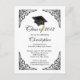 Start off your event right with our trendy & stylish black grad cap with with a black fancy border with a white background graduation party Post Card invitation. Perfect graduation invitation for a high school graduation or college graduation. Just fill in your information add your photo and you're all set to go. Visit our shop at www.celebrateitgraduations.com for a large assortment of graduation invitations! graphics©delightful-doodles