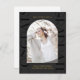 This modern photo graduation party invitation postcard features an elegant black background and big typography with a front geometric photo arch, and graduation party details and return address on the back.