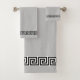 Elegant black Greek pattern on light silver grey Bath Towel Set.