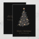 Elegant Black Grey Gold Script Christmas Tree Holiday Card