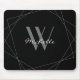 Elegant Black Grey Monogram Geometric Name Script Mouse Pad