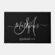 Personalised black and white and grey monogram design with bride and groom last name and wedding date on a black background. Makes a unique and great gift for newlyweds starting a new family. Great for new house together. Customise with your name, monogram initial and wedding date and colours. Elke Clarke©