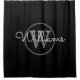 Elegant Black Grey Monogram Script Name Shower Curtain