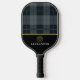 Elegant Black Grey Plaid Tartan Monogram Pickleball Paddle