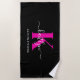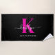 Elegant Black Hot Pink Script Monogram Beach Towel